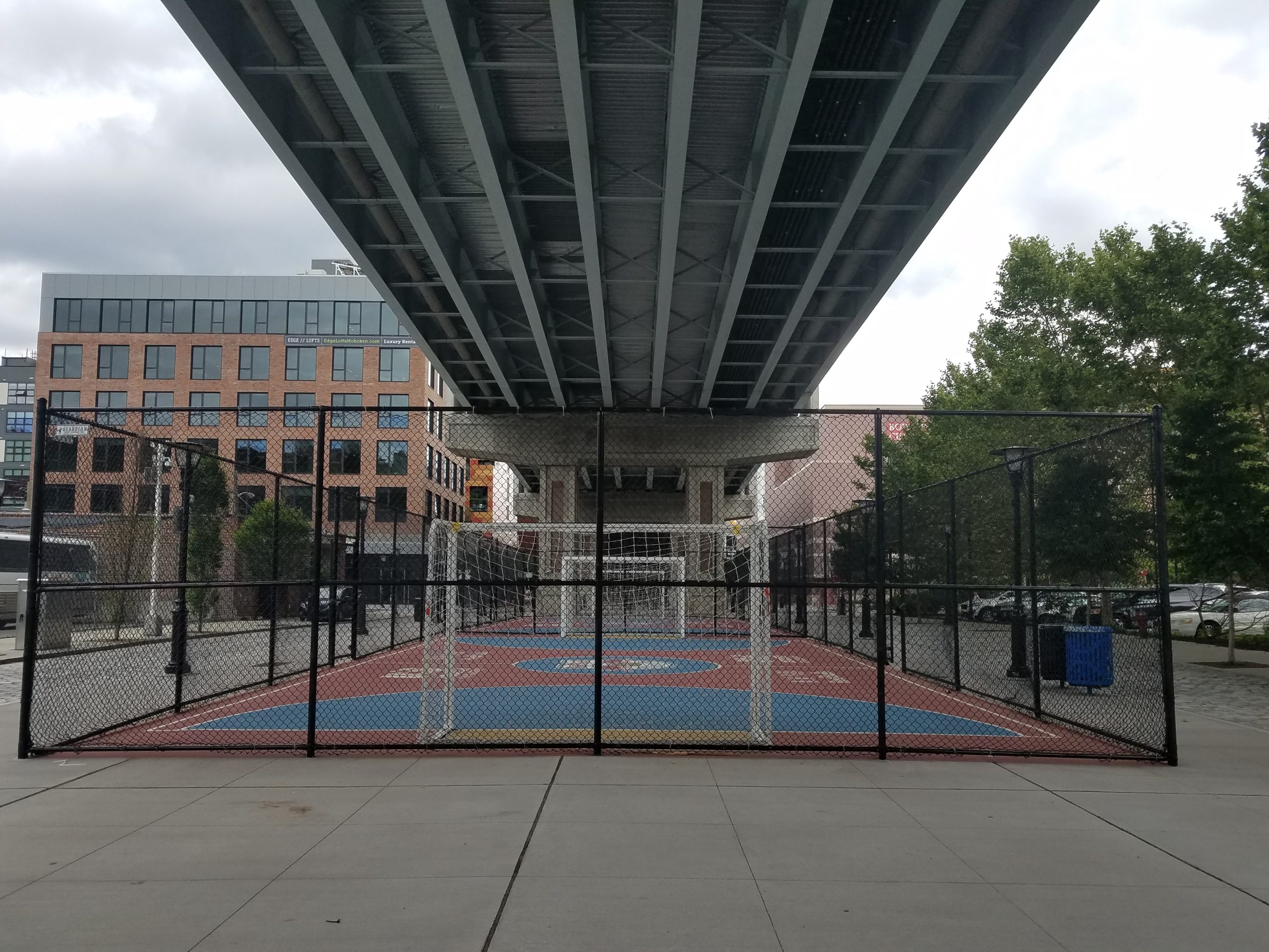 As the 106-year-old 14th Street Viaduct was replaced in Hoboken, the County improved the land under the bridge with a new park. Vibrant LED lighting, decorative paving, landscaping, and new sports facilities and play areas have provided recreational space for residents in the northwest corner of the city and visitors from around the County. The replacement of the viaduct has now transformed this underutilized space into an attractive amenity for the residents of northwest Hoboken.