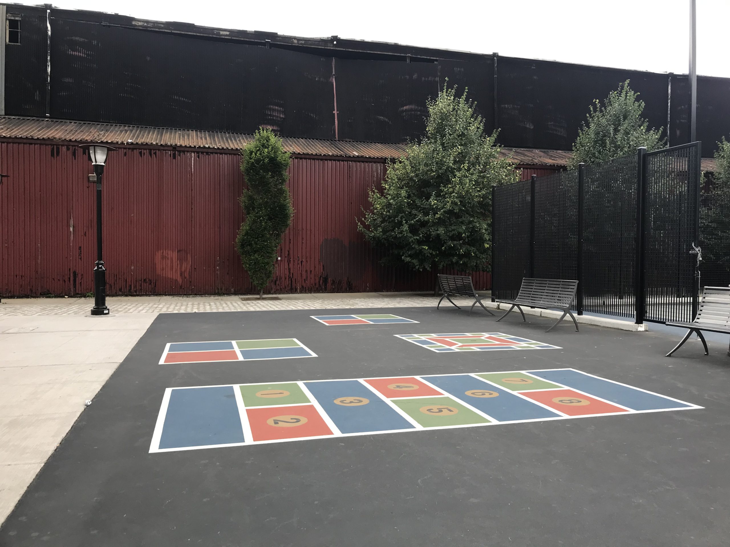 Recreational amenities include a playground, dog run, basketball court, and two small soccer practice areas. The park is served by the NJ Transit 22, 23, 89, and 126 buses which run along 14th Street and the Hudson-Bergen Light Rail Ninth Street station is a short distance away. The replacement of the viaduct has now transformed this underutilized space into an attractive amenity for the residents of northwest Hoboken.